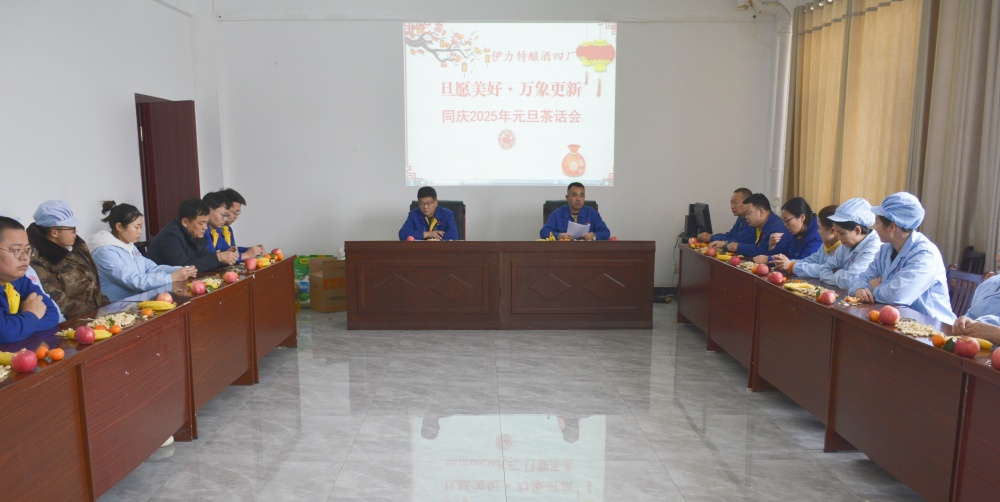 12月31日下午,伊力特釀酒四廠會議室內暖意融融,一場以“旦愿美好·萬象更新”為主題的同慶2025年元旦茶話會活動在此溫馨上演,30余名各車間員工代表及困難員工參加此次活動,共賀新年,同享歡樂時光。