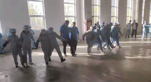 4月27日下午,伊力特酒四廠專職安全員余洪亮在該廠釀酒車間門口詳細講解消防水帶拋卷的動作要領,消防水帶的附件,包括接口、分水器等的使用及保養方法及滅火器的使用方法。各
