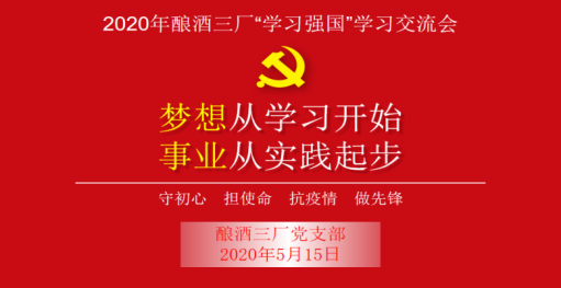 “積土而為山,積水而為海。”自2019年,公司全力推廣使用“學(xué)習(xí)強(qiáng)國”學(xué)習(xí)平臺以來,“學(xué)習(xí)強(qiáng)國”如同一縷和煦的春風(fēng)吹進(jìn)釀酒三廠,在這一年內(nèi),不僅催生綻放出了絢麗的花朵,還滿足了本廠廣大黨員干部和職工群眾多樣化、智能化、便捷化的學(xué)習(xí)需求。為貫徹落實(shí)公司黨委關(guān)于在疫情防控特殊階段科學(xué)合理的開展黨內(nèi)組織活動的決策部署,該廠黨支部借取這股春風(fēng),于2020年5月15日下午16點(diǎn)整,在電教室部署開展了“學(xué)習(xí)強(qiáng)國”APP答題挑戰(zhàn)賽主題黨日活動,推動習(xí)近平新時代中國特色社會主義思想往深里走、往實(shí)里走、往心里走。