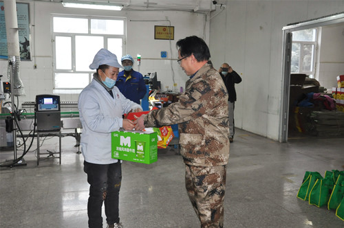 12月13日,伊力特釀酒一廠工會買了盒裝酸奶、砂糖橘、蘋果、香蕉、凍餃等分裝成禮包,慰問辛勤工作在生產一線的包裝工人。在慰問現場,黨支部書記王路說,在新年即將到來之際,為了企業的發展,我們包裝工人辛苦工作,奮戰在一線,我代表釀酒一廠黨支部、廠領導班子、廠工會慰問大家,祝大家工作順利,身體健康。